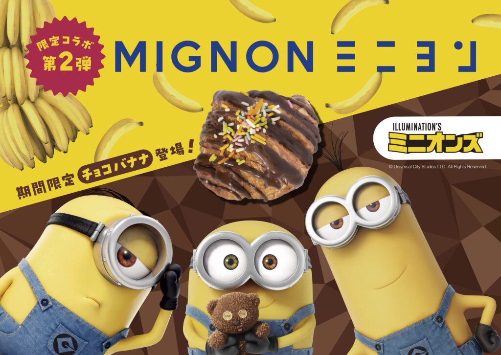 2026年3月1日(日)より、ミニヨン全店(※天王寺ミオ店のみ3/6(金)〜)にて、『ミニオンズ』との限定コラボ第2弾となる『チョコバナナ』のクロワッサンと、前回大好評により早期完売となった『限定コラボショッパー』の販売をスタートします!